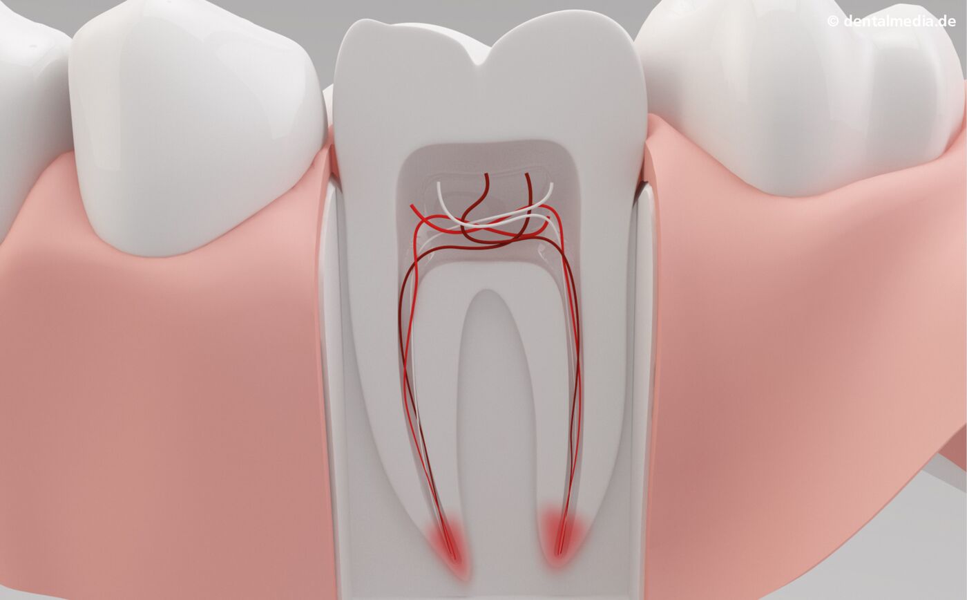 In den meisten Fällen sind Kariesbakterien Ursache für eine Entzündung des Zahnes. Tiefe Karies oder auch ein bis in das Zahnbein (Dentin) reichender Bruch ermöglichen Bakterien, bis in das Zahninnere vorzudringen. Dort befindet sich die Pulpa, welche umgangssprachlich auch als „Nerv“ bezeichnet wird. Die Pulpa besteht aus lebendem Gewebe mit Nerven und Blutgefäßen, welches sehr empfindlich und durch eine geringe körpereigene Abwehrleistung gekennzeichnet ist. Eine Erkrankung dieses Gewebes wird als Pulpitis bezeichnet und kann durch ausbleibende Behandlung zum Absterben der Pulpa führen – ein wurzeltoter Zahn entsteht. Eitrige Entzündungen sind die Folge, welche den Kieferknochen in diesem Bereich zerstören.